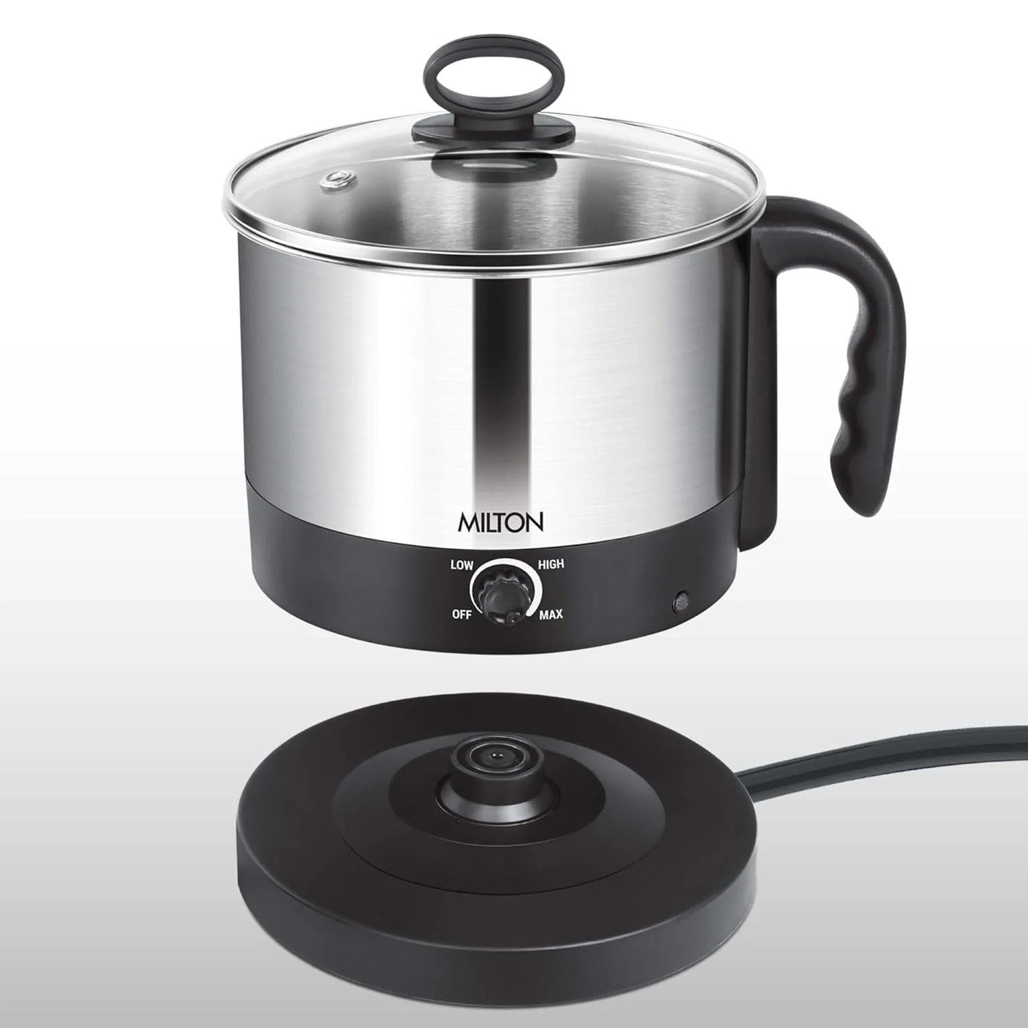 - Electric Insta Cooker have a detachable base, making them convenient to lift and pour without being restricted by a cord. The base is used to connect the cooker to a power source and provides the heating element.